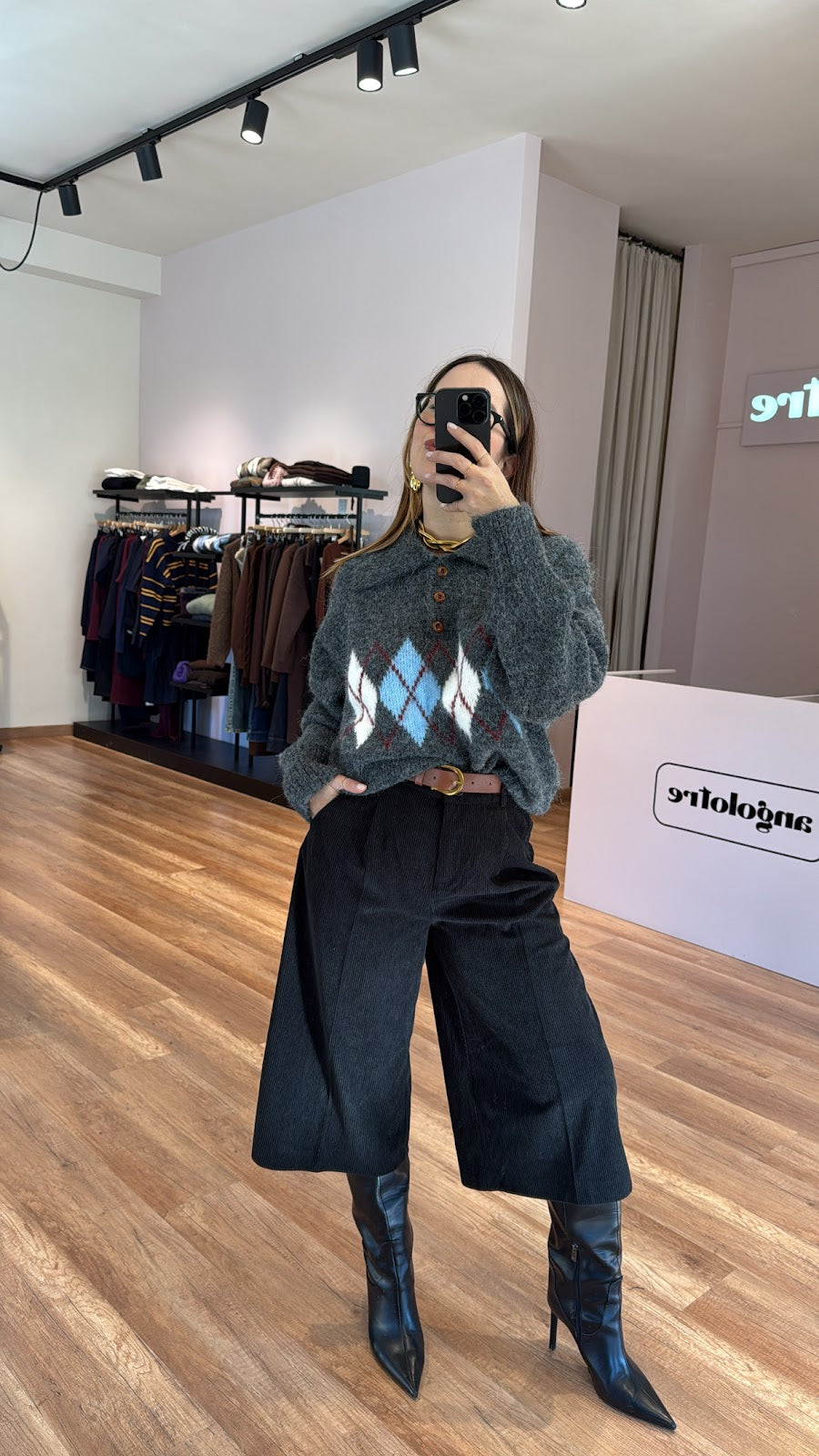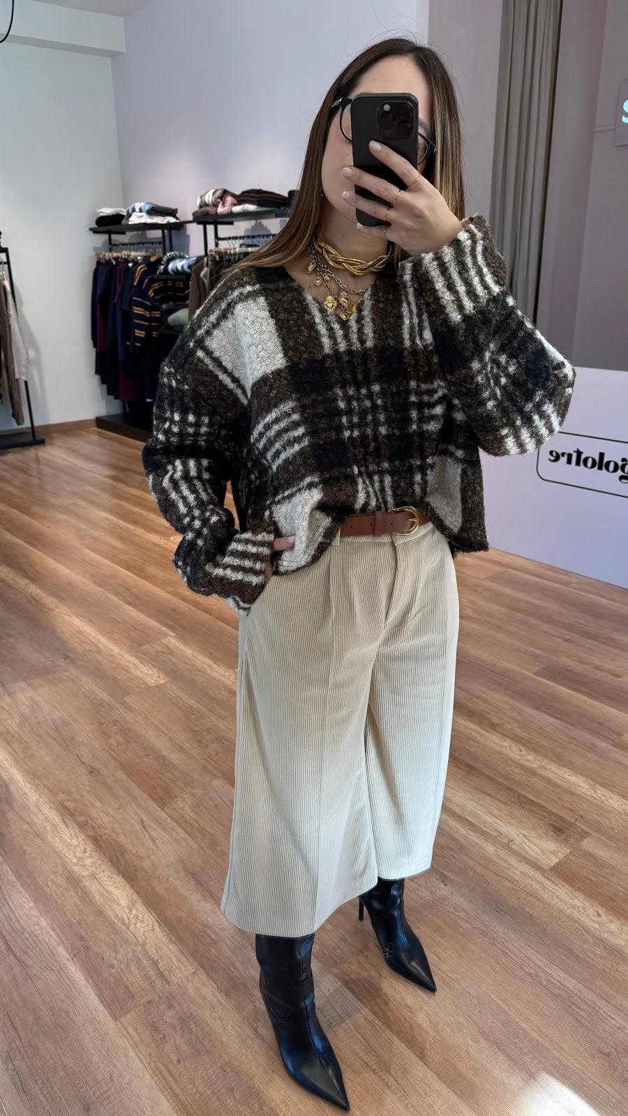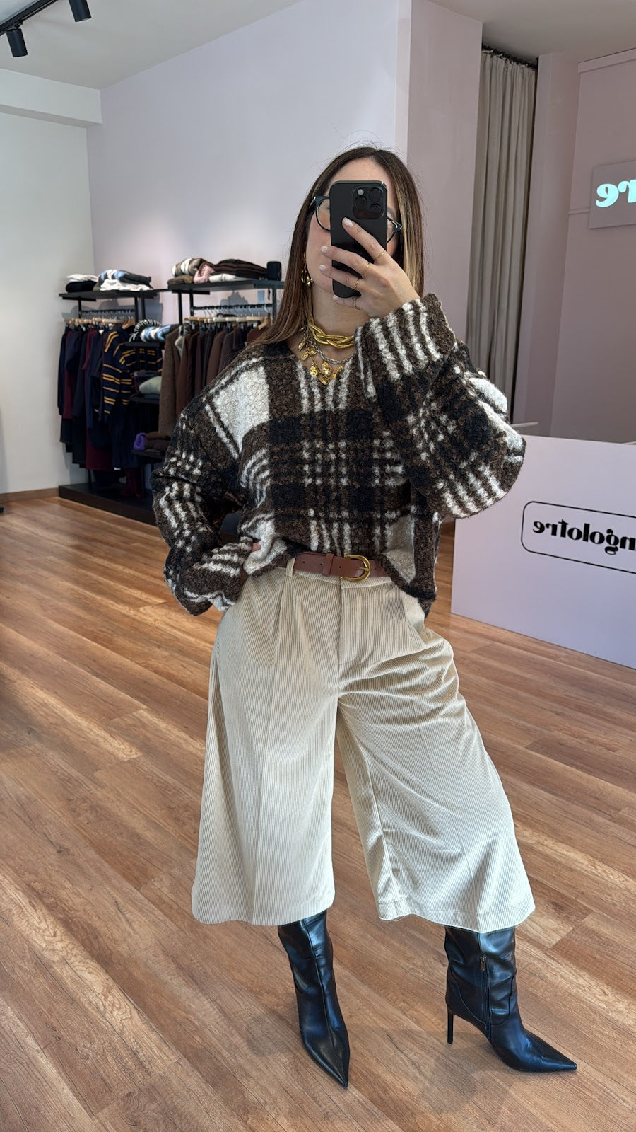 Bermuda in velluto a costa, taschine a filo laterali e pinces sul davanti. Cinta compresa. Greta indossa la taglia S.