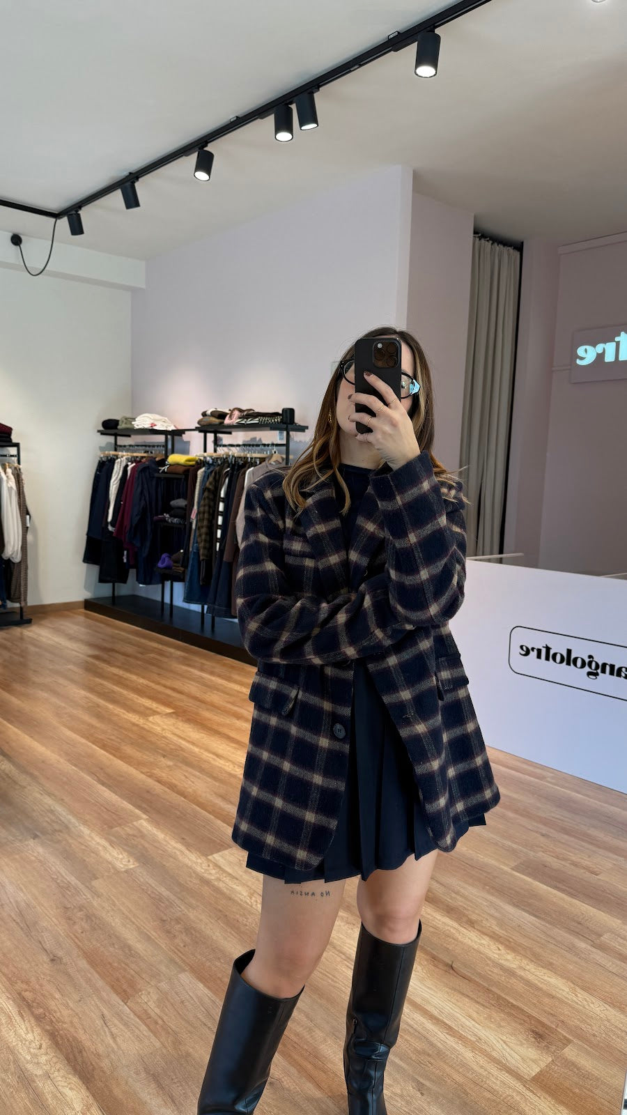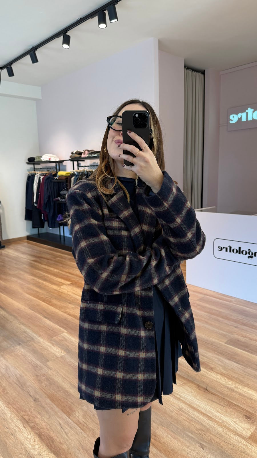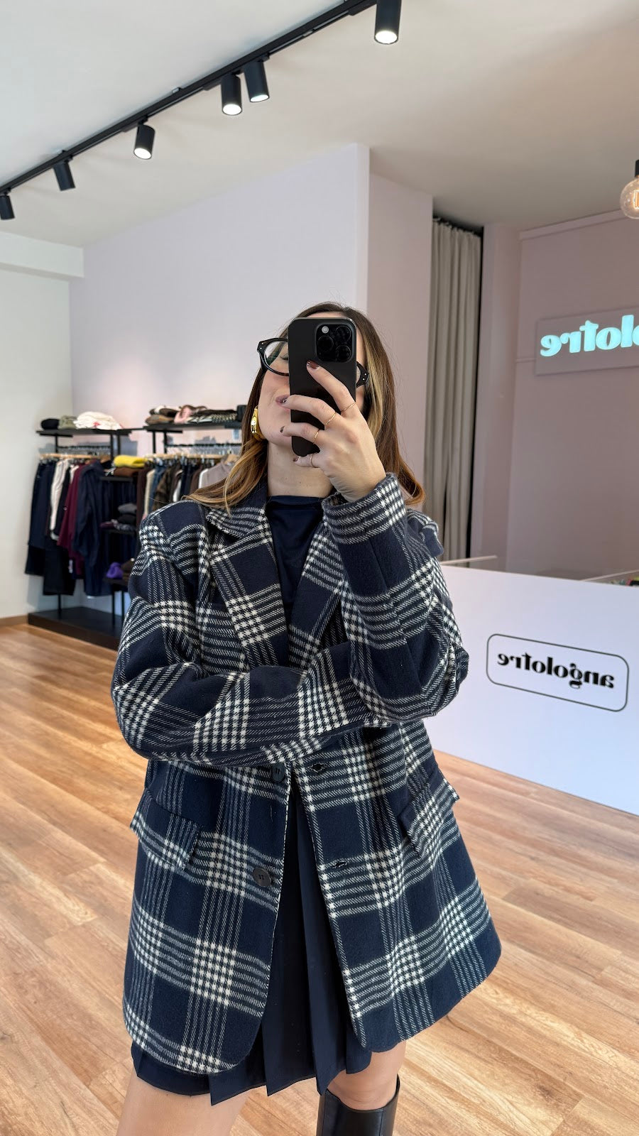 Blazer in panno fantasia, con finte tasche sul davanti. Veste fino a una taglia 44. Greta veste una taglia 40/42.