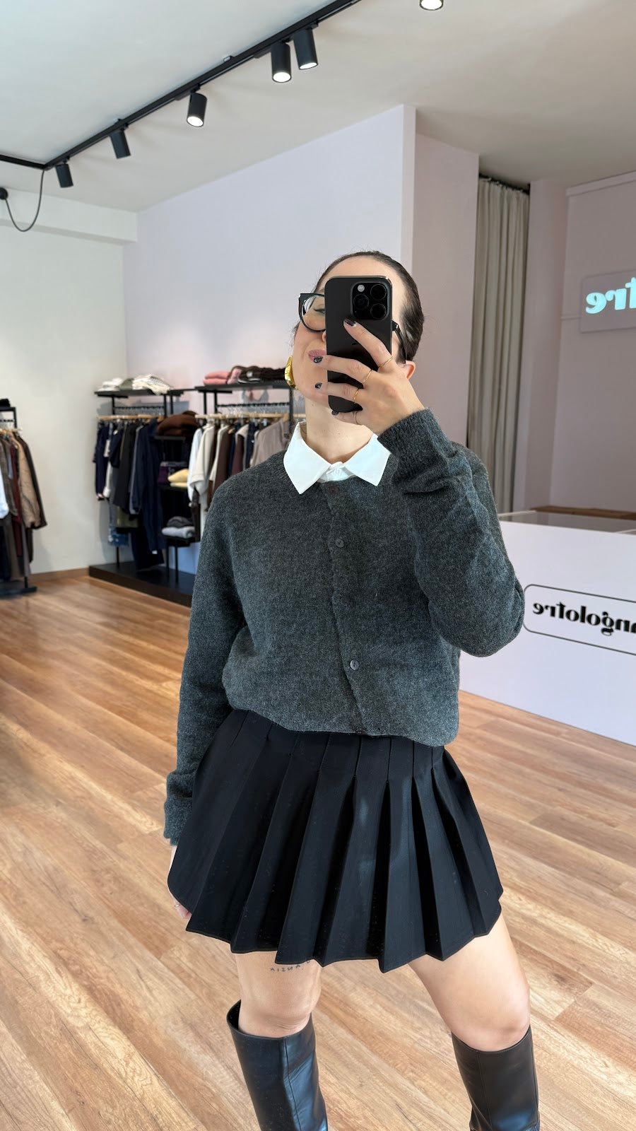 Coreana bottoncini sul davanti. Vestibilità regolare. Camicia non inclusa. Greta veste una taglia 40/42.