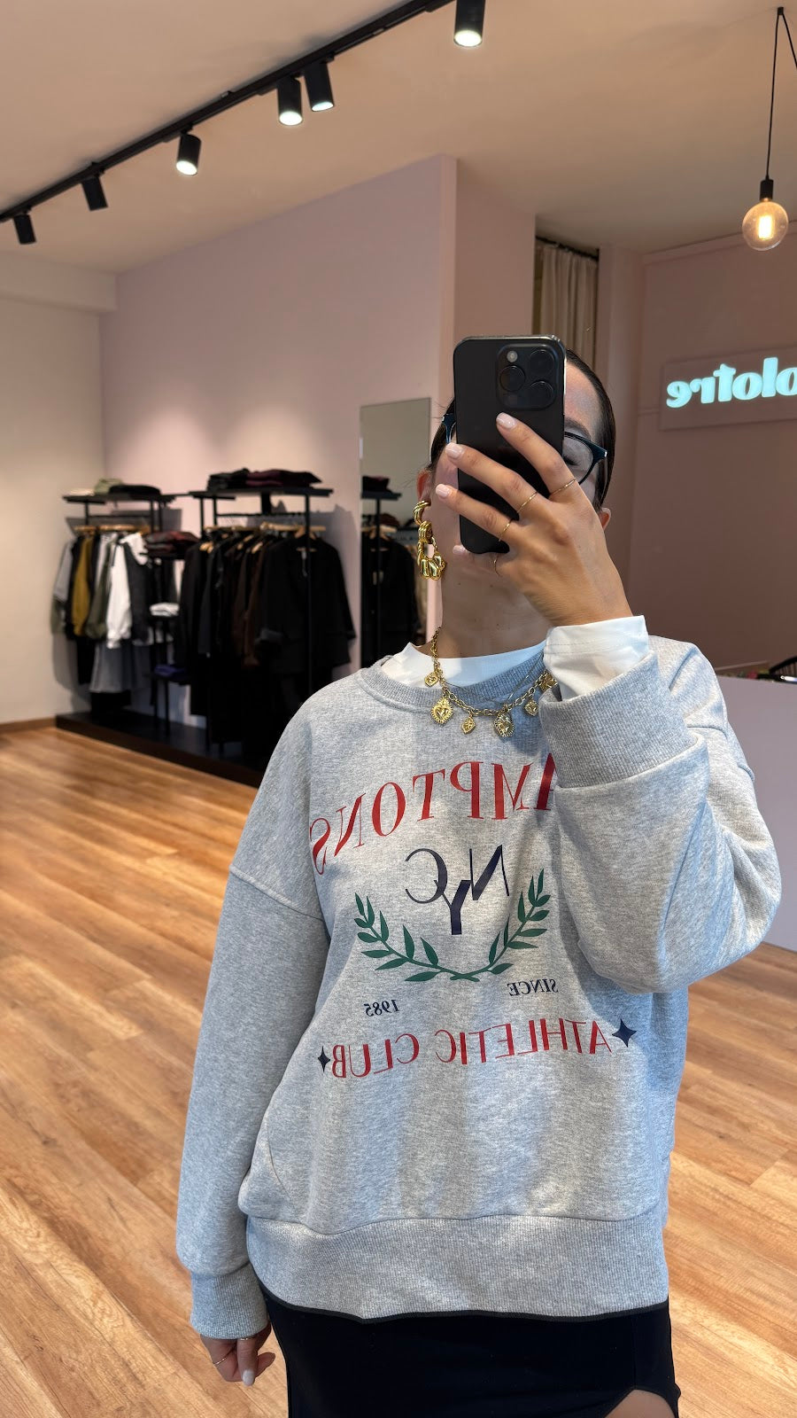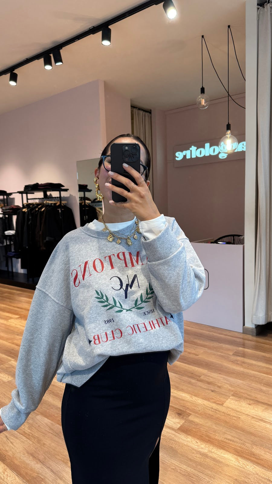 Felpa over girocollo con stampa frontale, in cotone garzato.Greta veste una taglia 40/42.