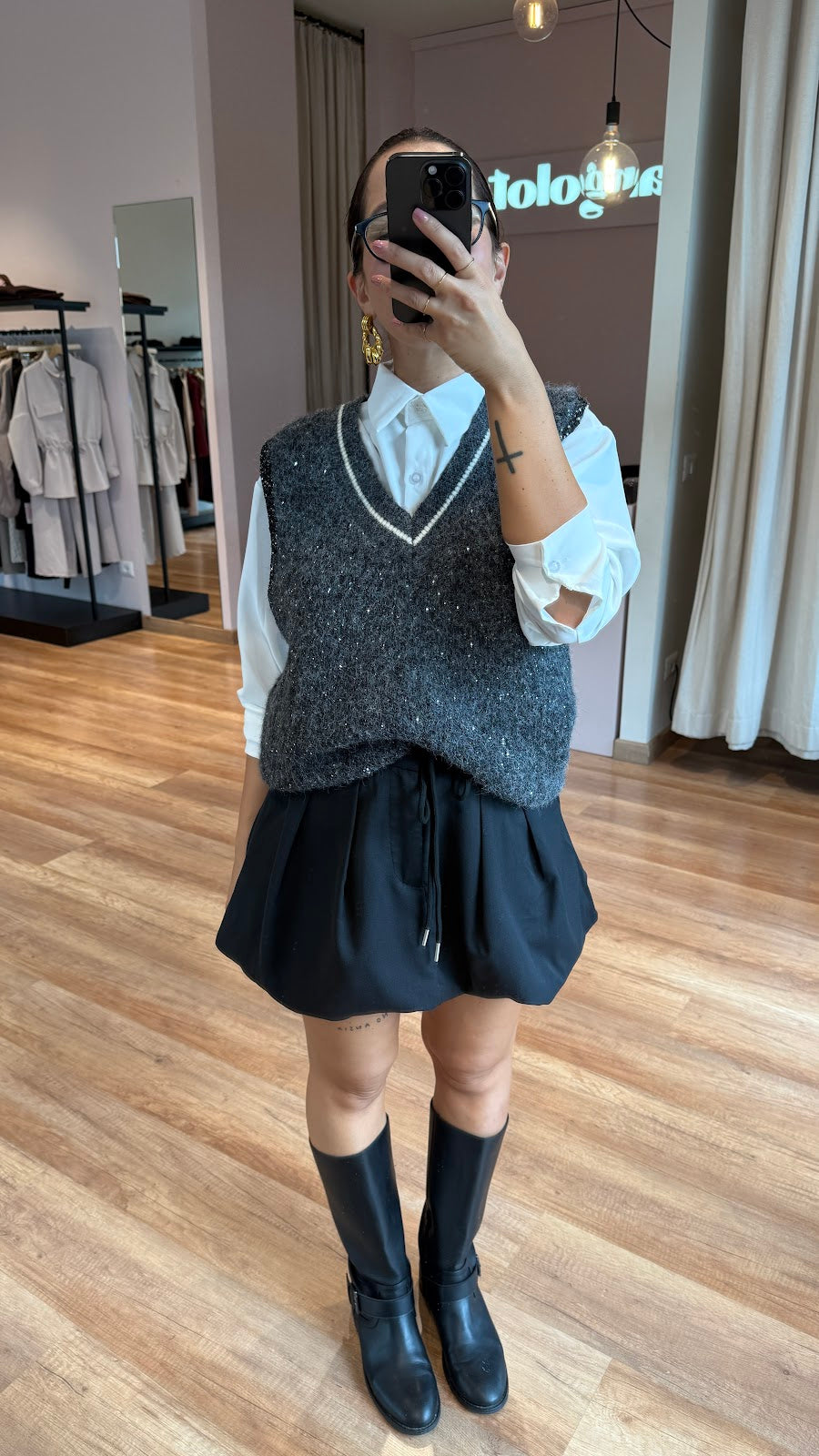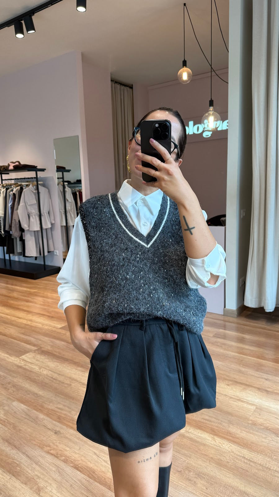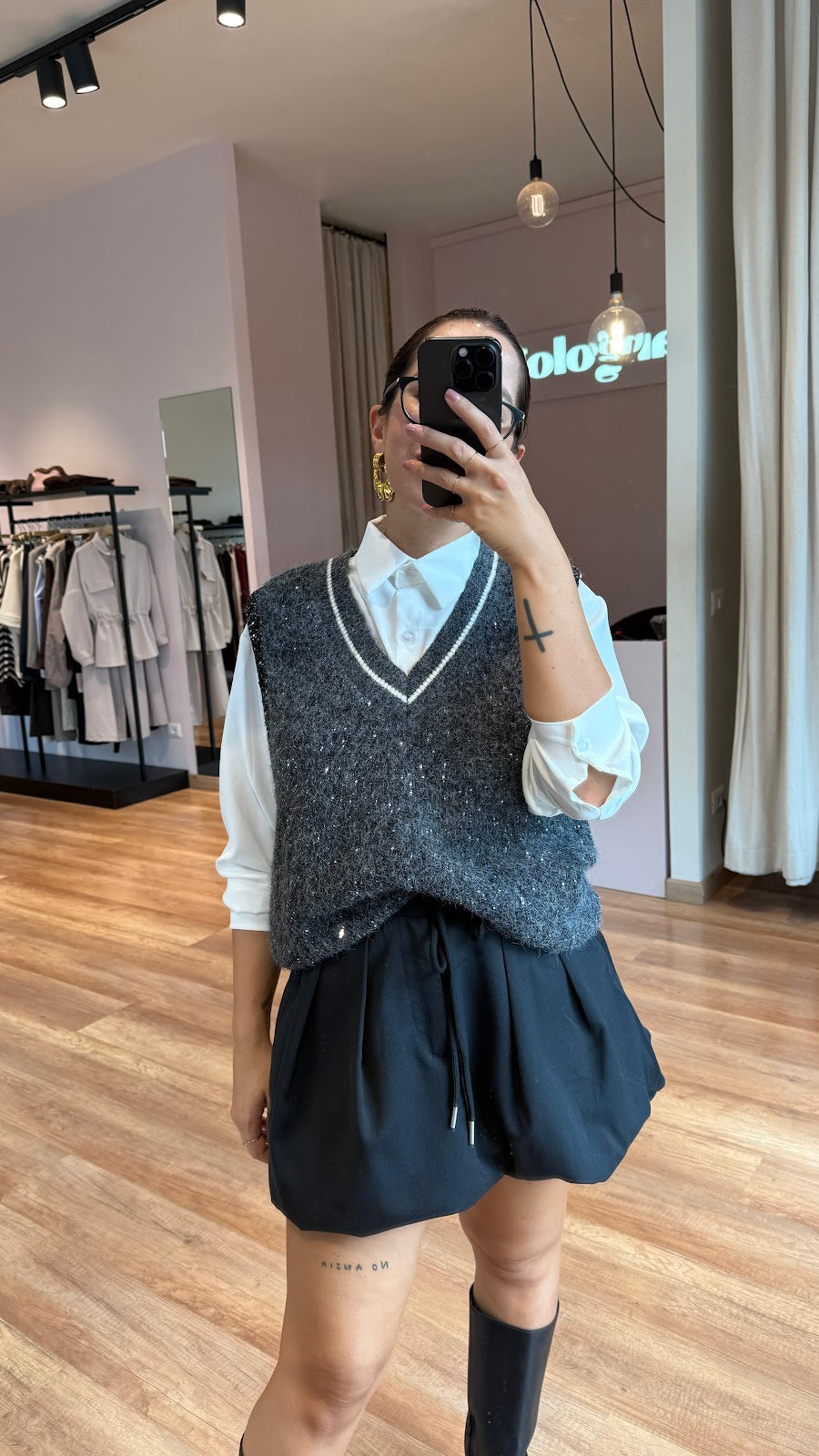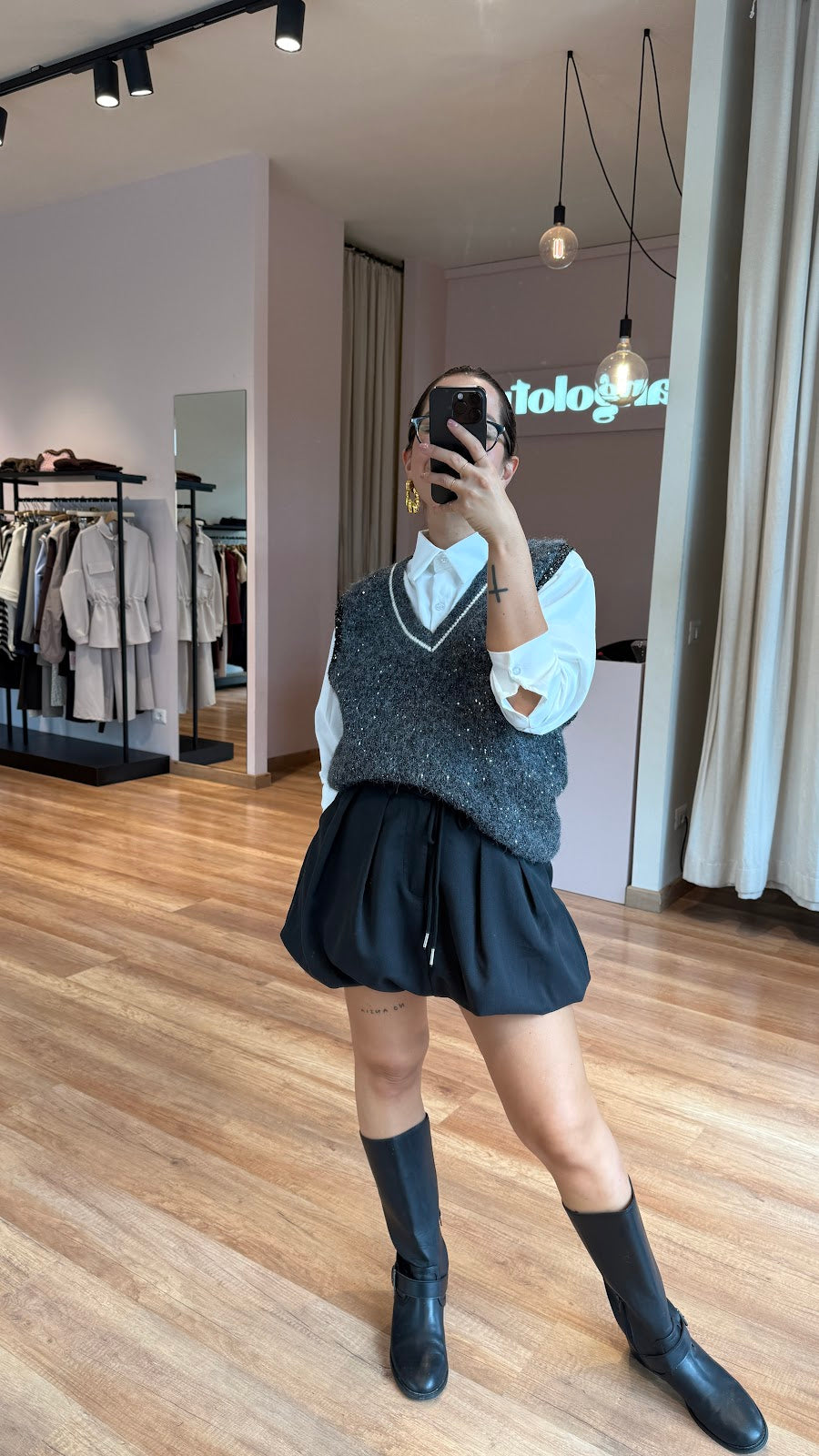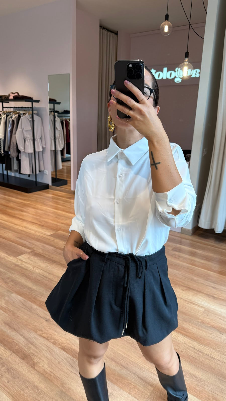 Gonna a palloncinocon coulisse in vita, taschine laterali. Greta veste una taglia S/M.