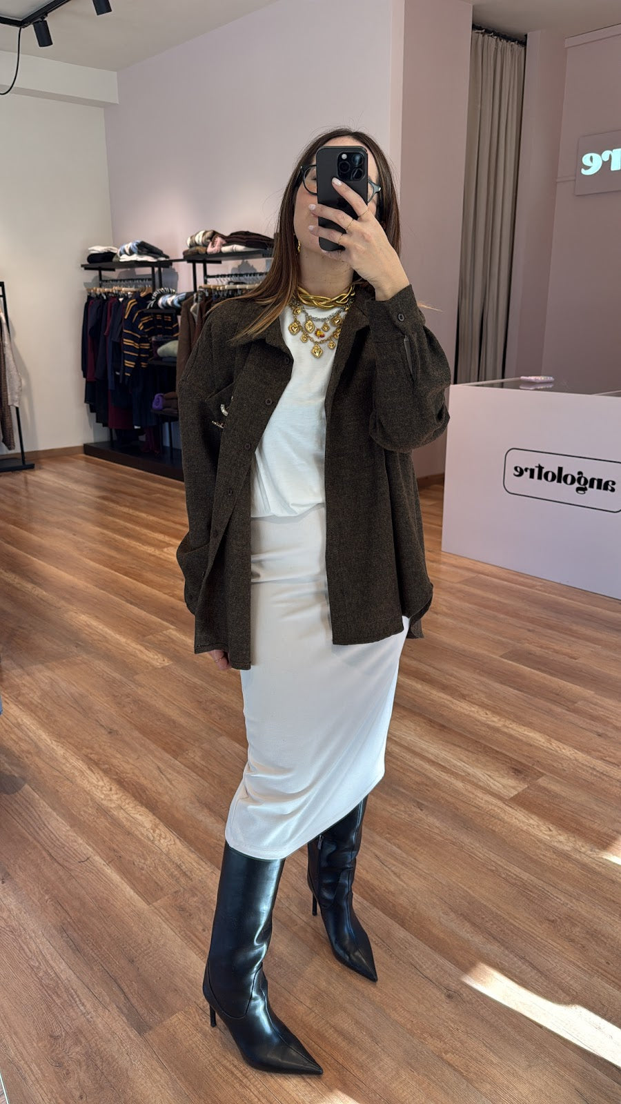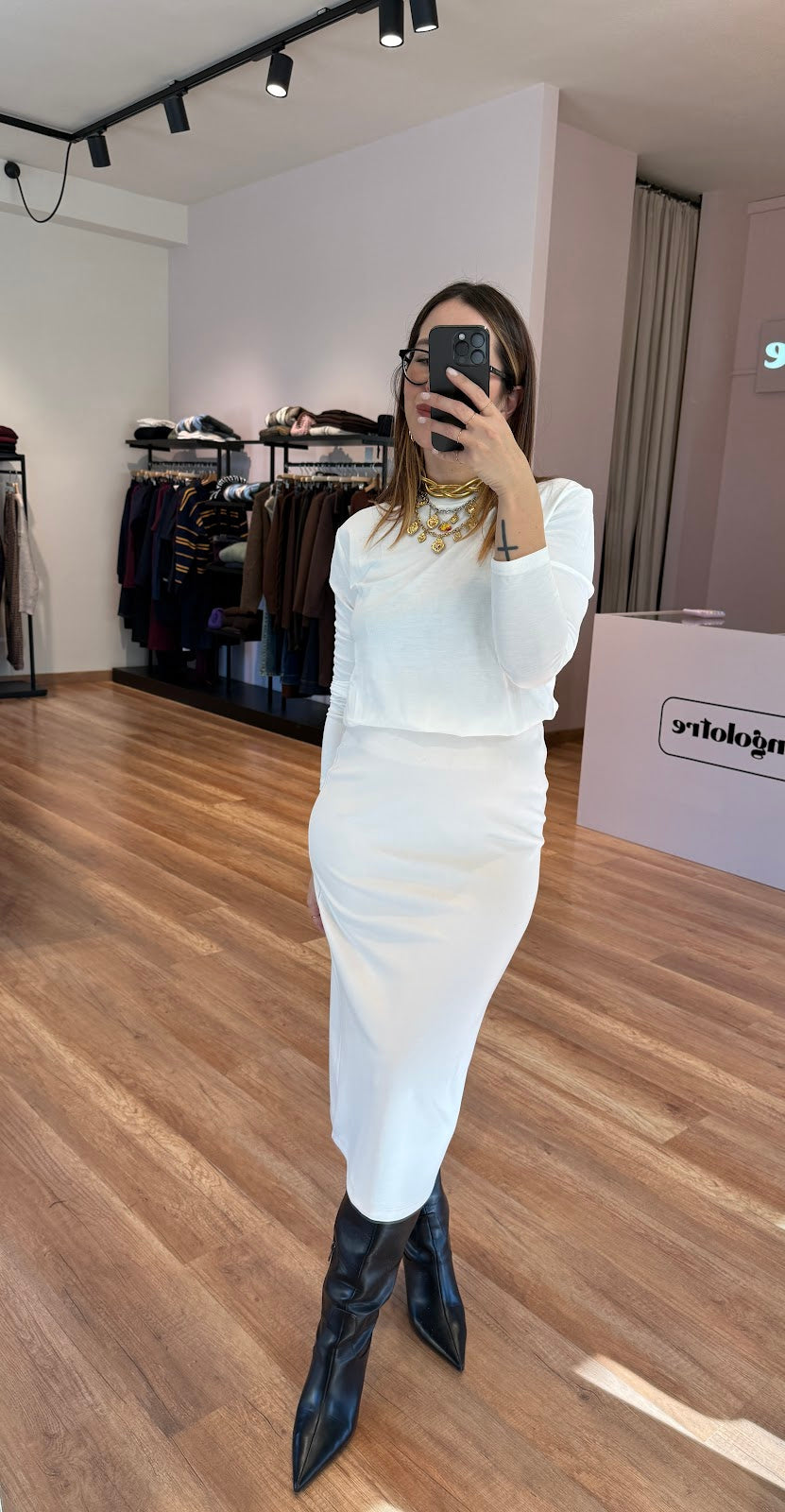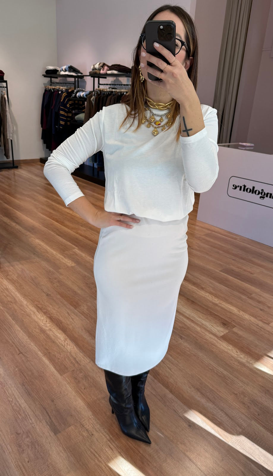 Longuette KikiSix in punto milano, elastico in vita e spacco dietro. Greta indossa la taglia S/M