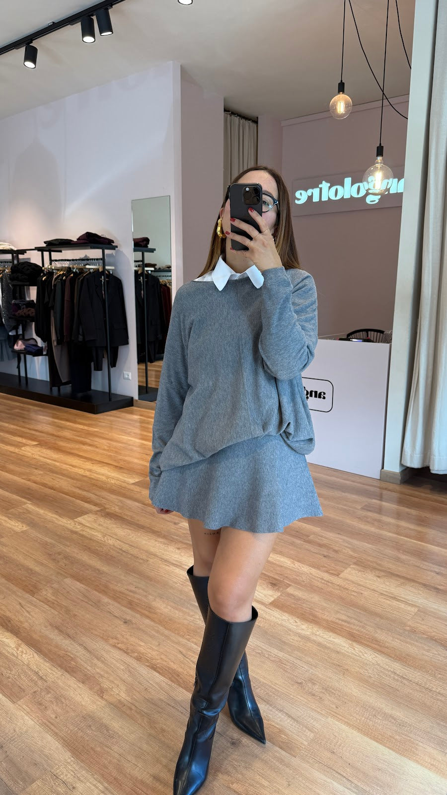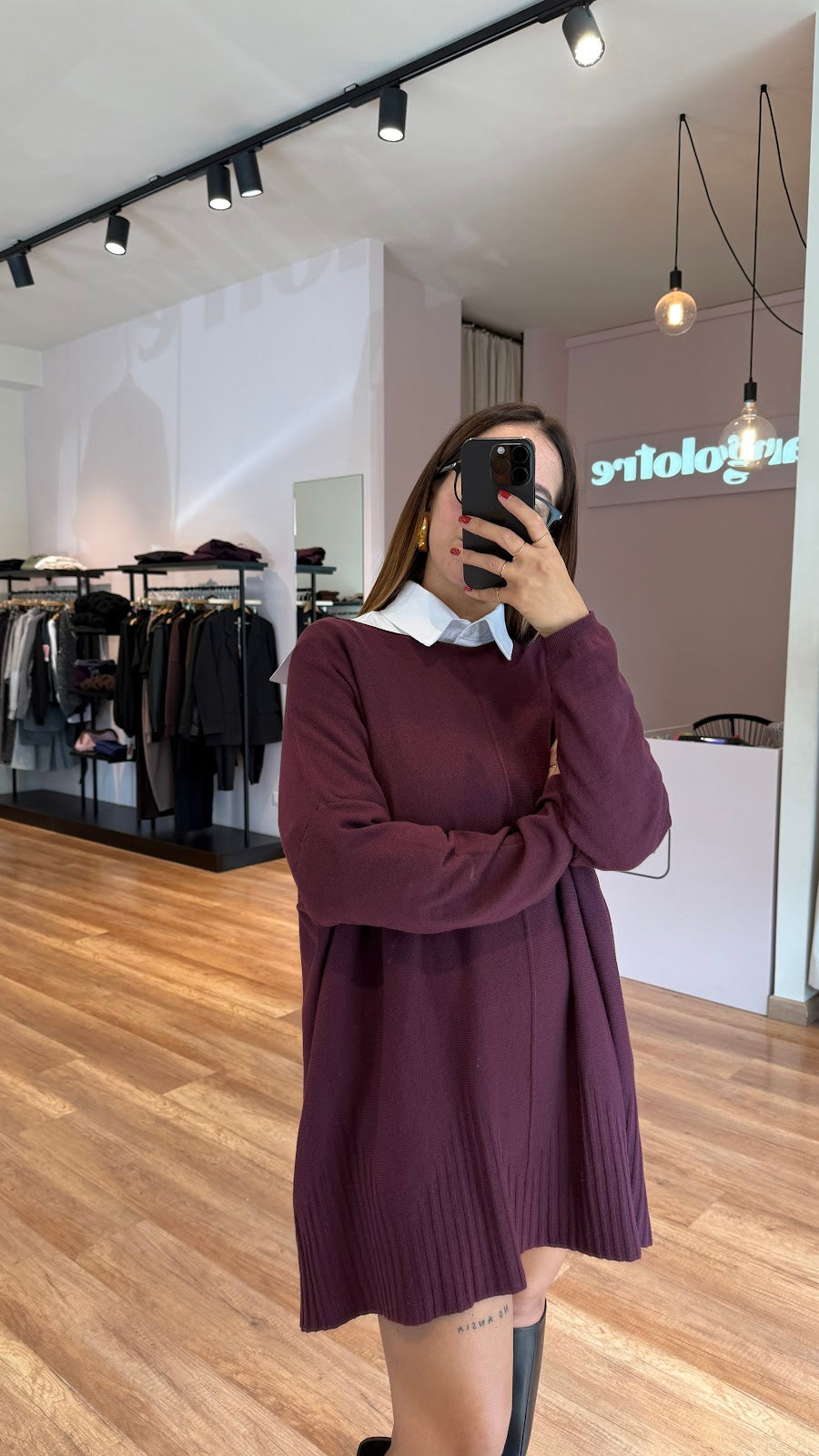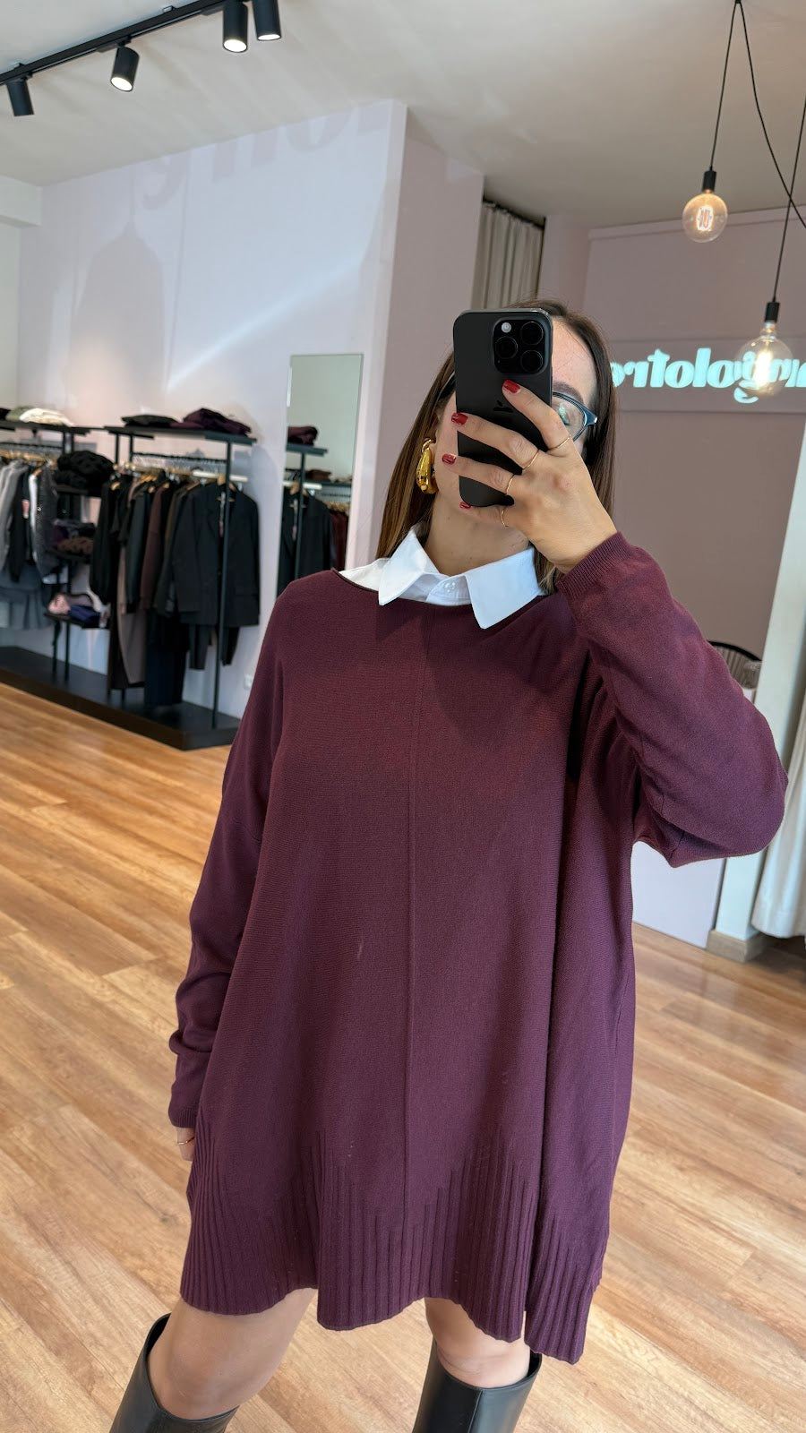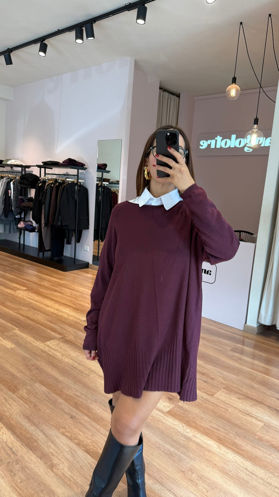 Maxi Pull in maglia, utilizzabile anche come abitino. Vestibilità over, spalla scesa. Greta veste una taglia 40/42.