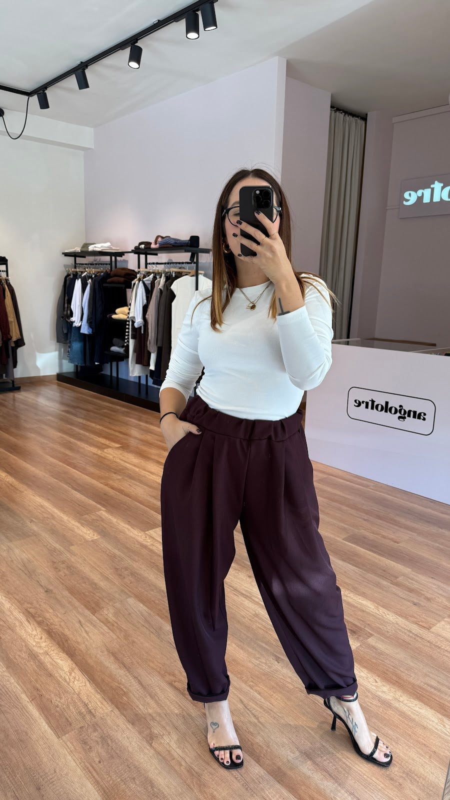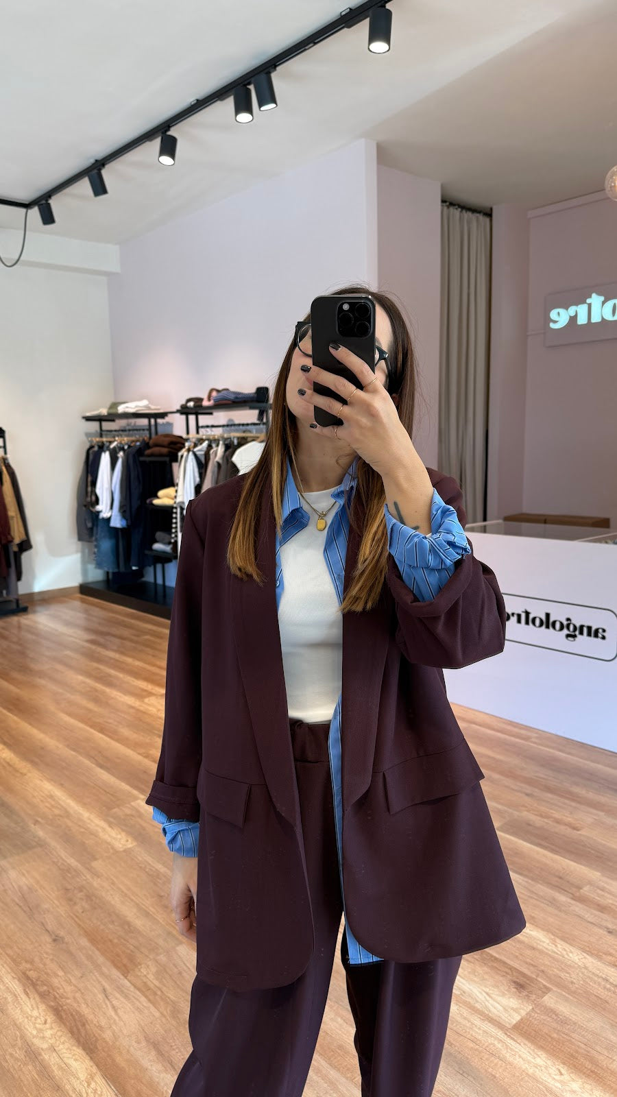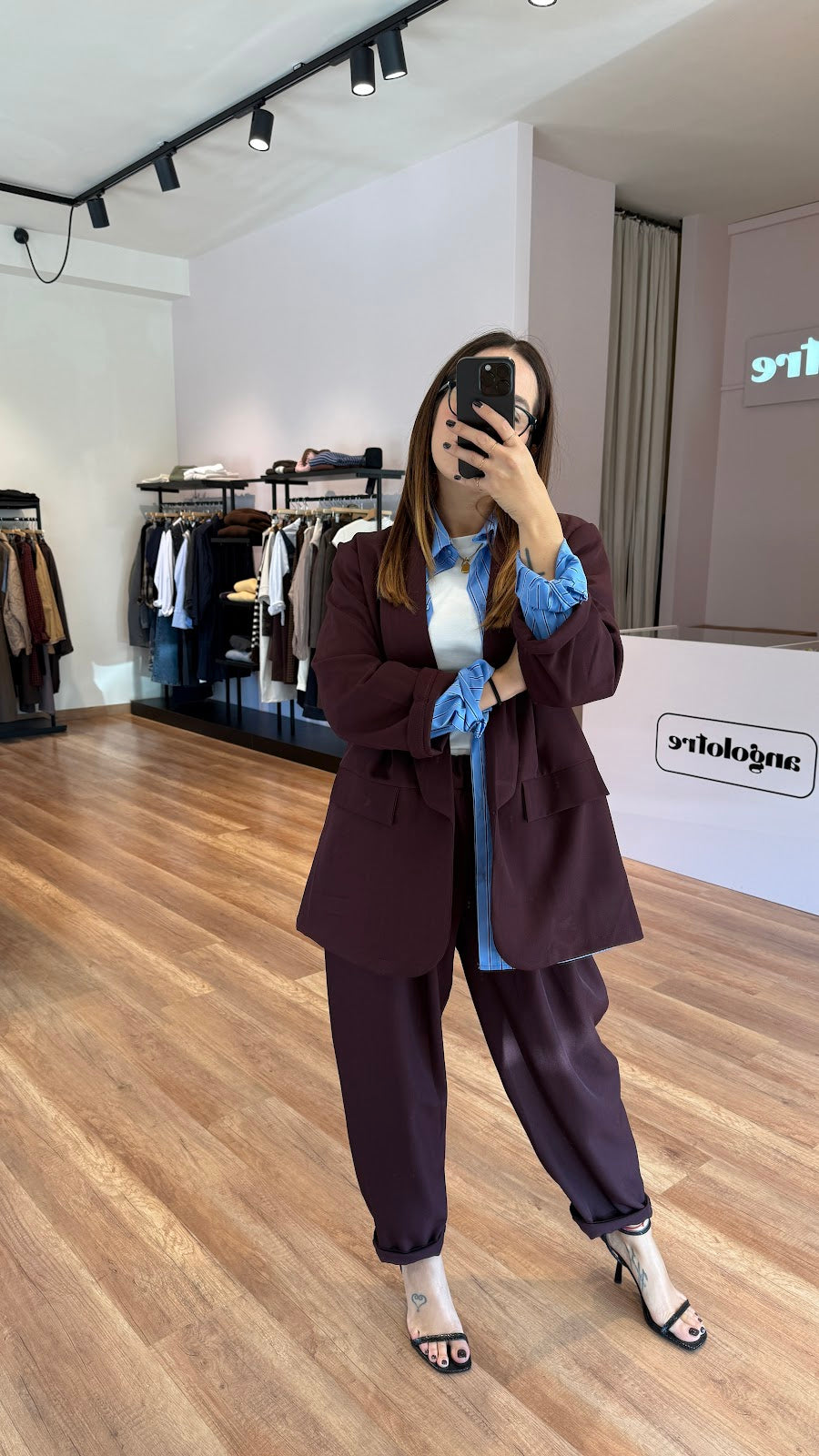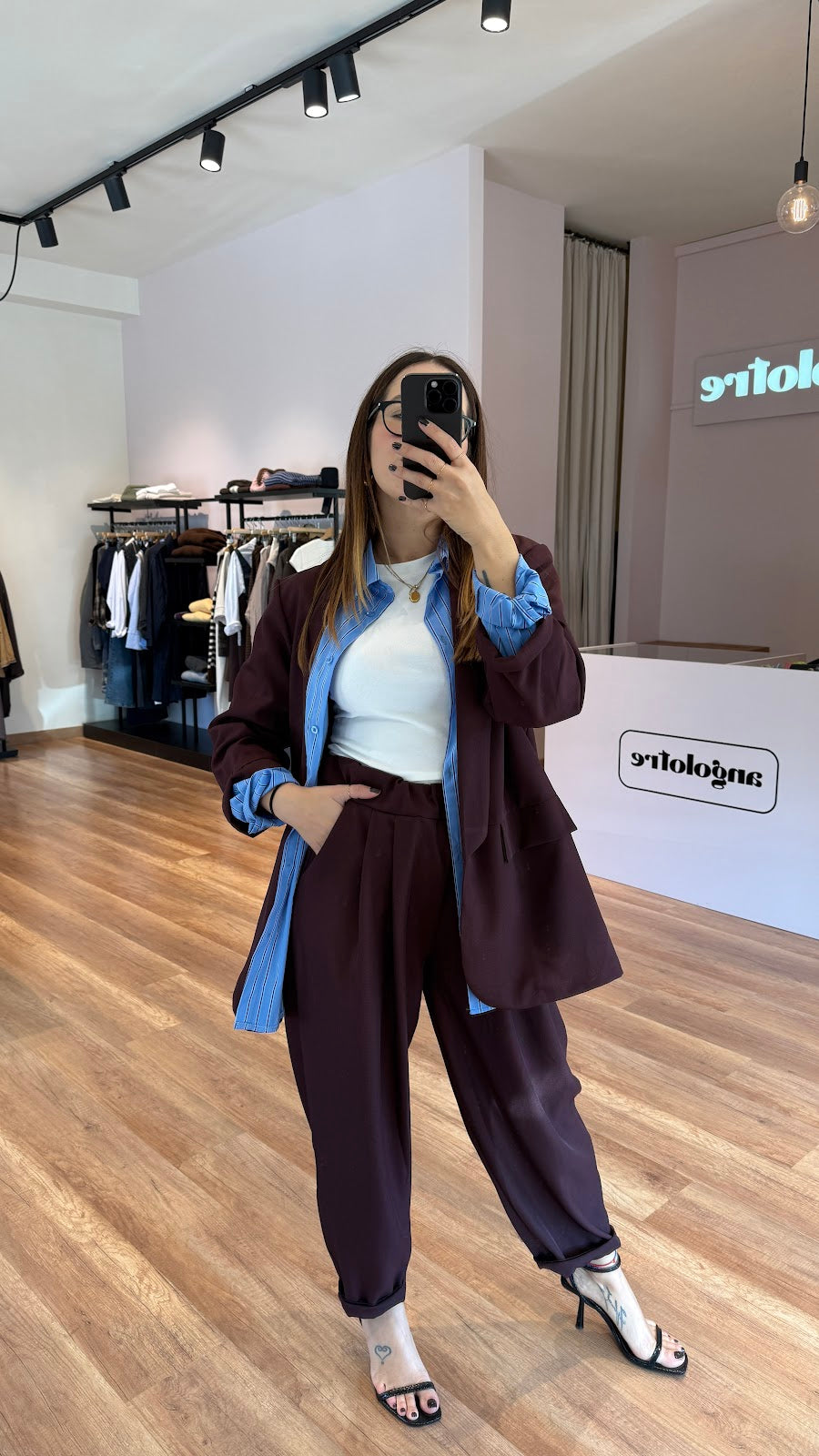 Set con blazer over sfoderato senza bottoni e pantalone carrot con elastico in vita. Veste fino ad una 46. Greta veste una taglia 40/42.